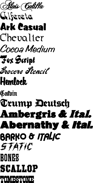 The following fonts are included in the: